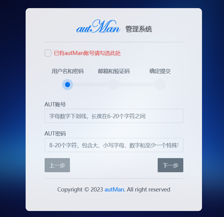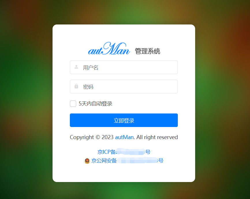 二、重启autMan两次即可访问autMan后台进行页面登陆。