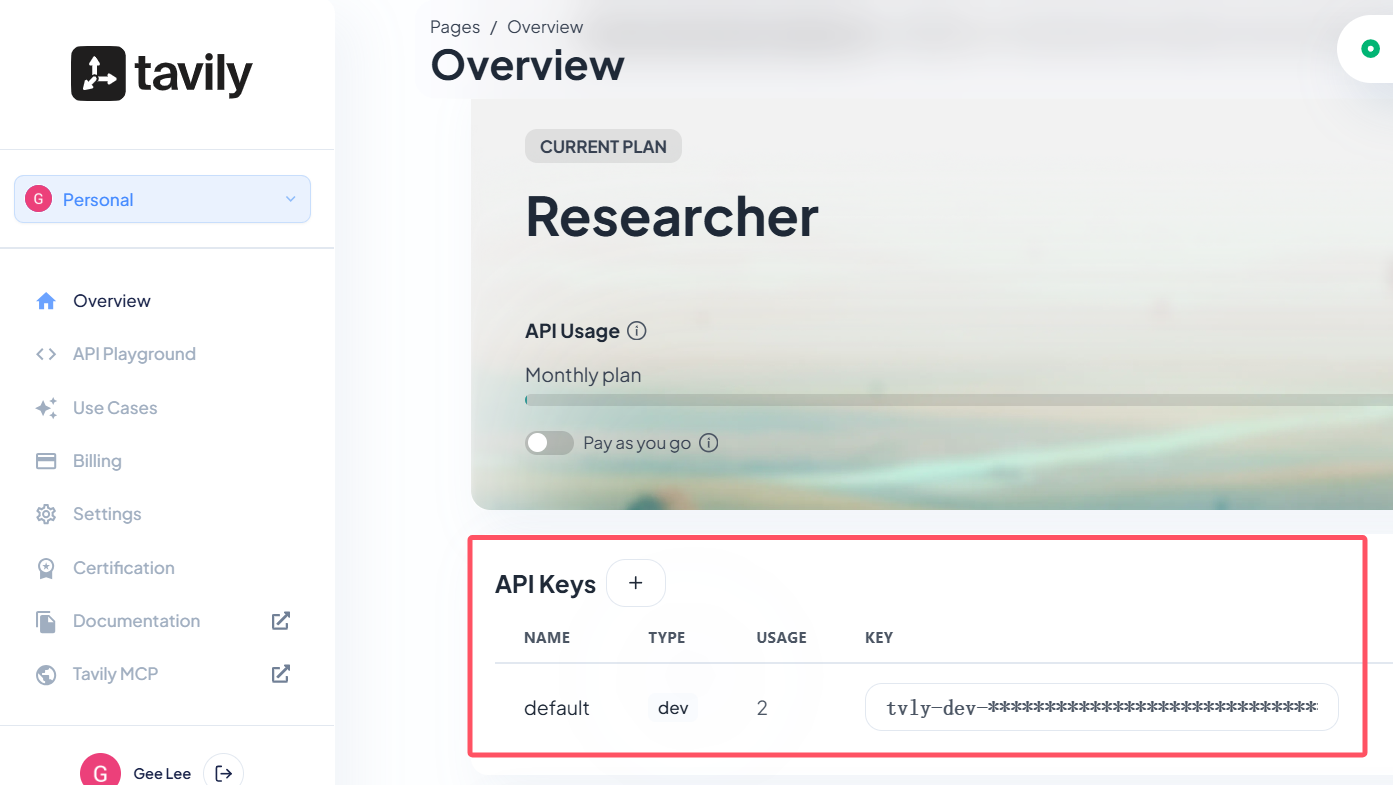 地址:https://app.tavily.com/home
