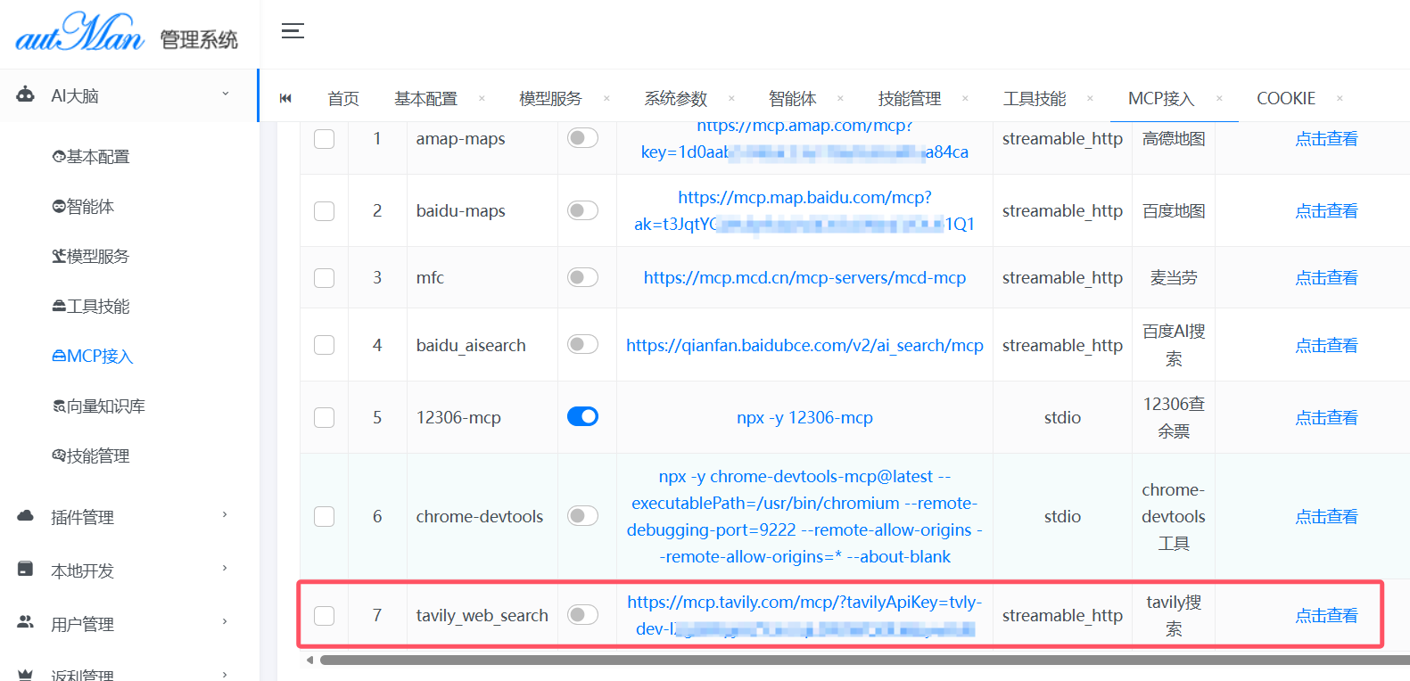 - 打开autMan控制台,进入"MCP服务管理"页面