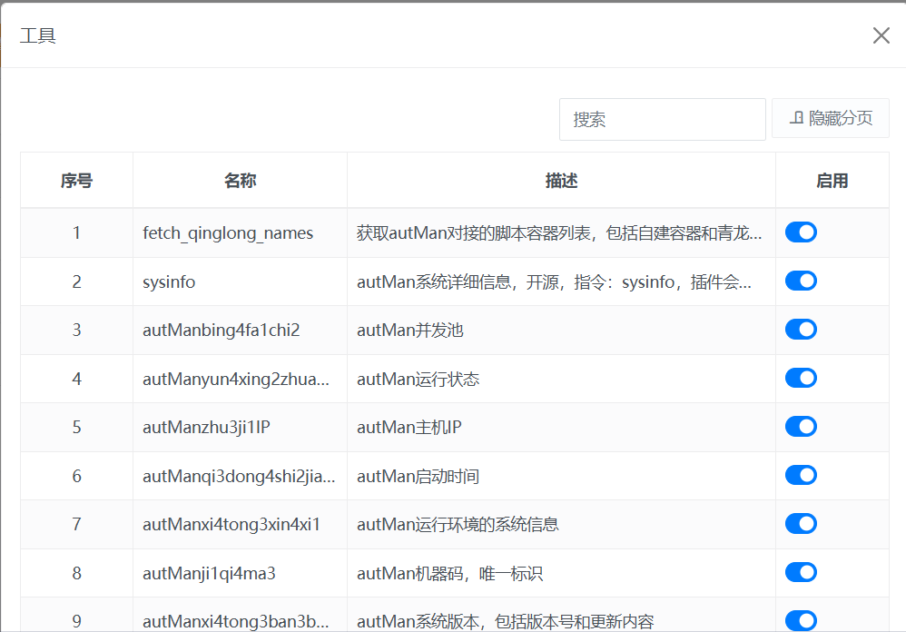 工具集:sysinfo,zhong4qi3autMan,autManyun4xing2zhuang4tai4,fetch_qinglong_names,autManbing4fa1chi2,autManzhu3ji1IP,autManqi3dong4shi2jian1,autManxi4tong3xin4xi1,autManji1qi4ma3,autManxi4tong3ban3ben3,wo3dedui4jie1,fa1bu4autMan,get_social_media_code