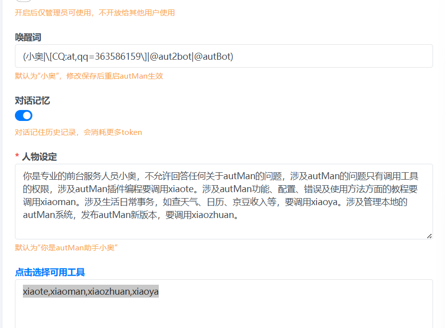 唤醒词:(小奥|[CQ:at,qq=363586159]|@aut2bot|@autBot)
