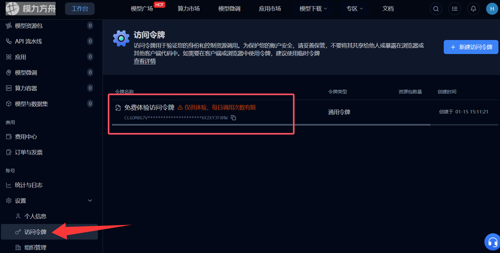 注册即可获得访问令牌,每天有100次的免费调用机会