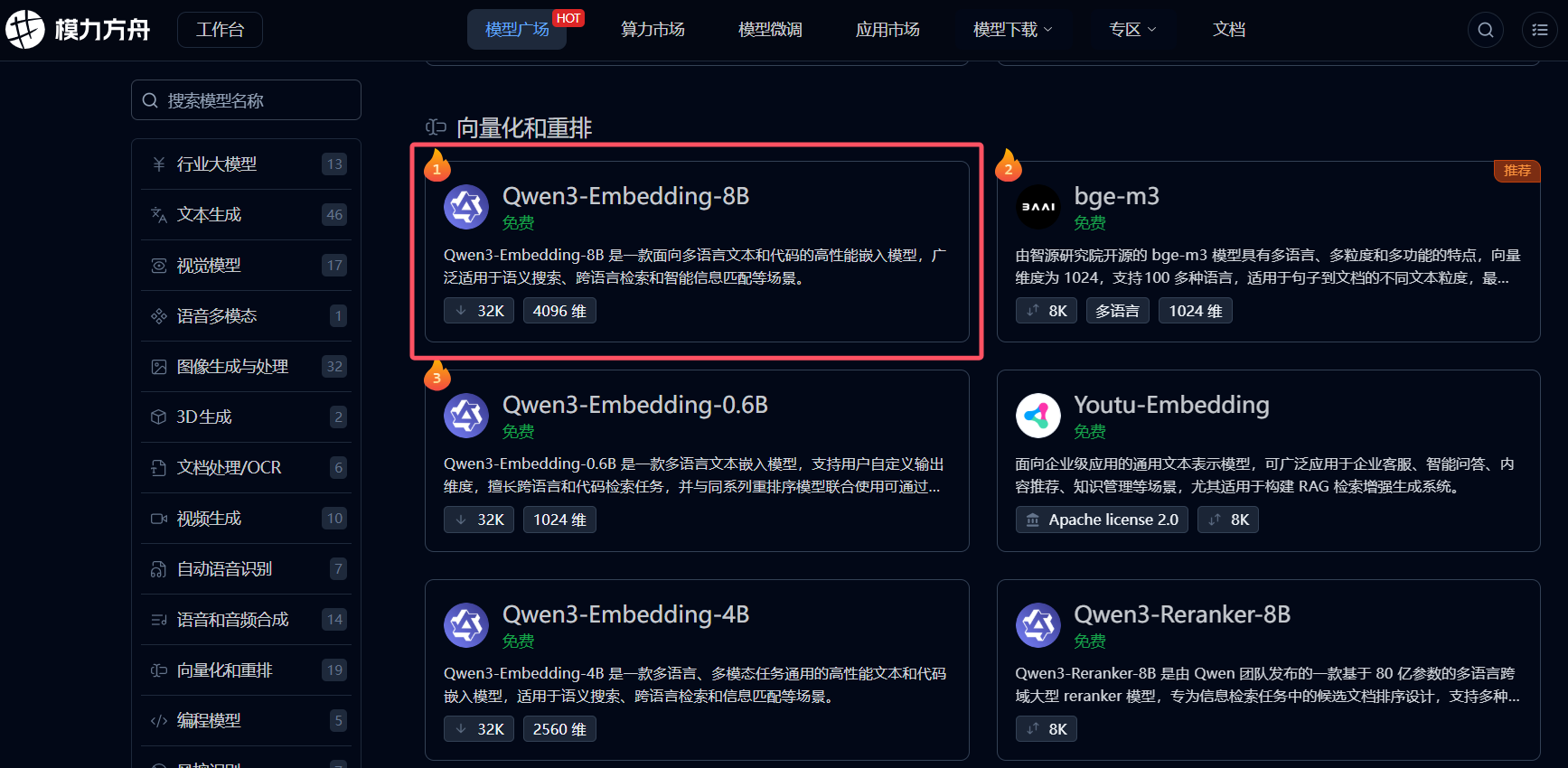 要使用的向量化模型为:Qwen3-Embedding-8B,支持的最大向量化维度为4096