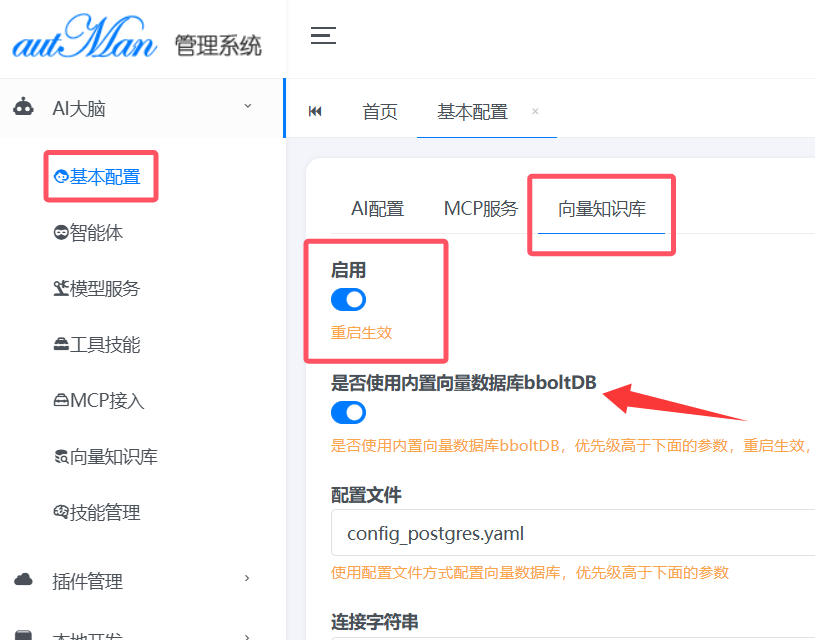 一是在autMan主文件夹创建文件config_postgres.yaml,并填写配置文件名