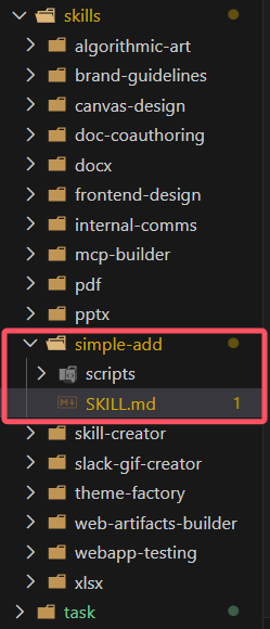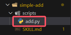 2. 构造一个命令:`python ./skills/smiple-add/scripts/add.py <第一个数字> <第二个数字>`。